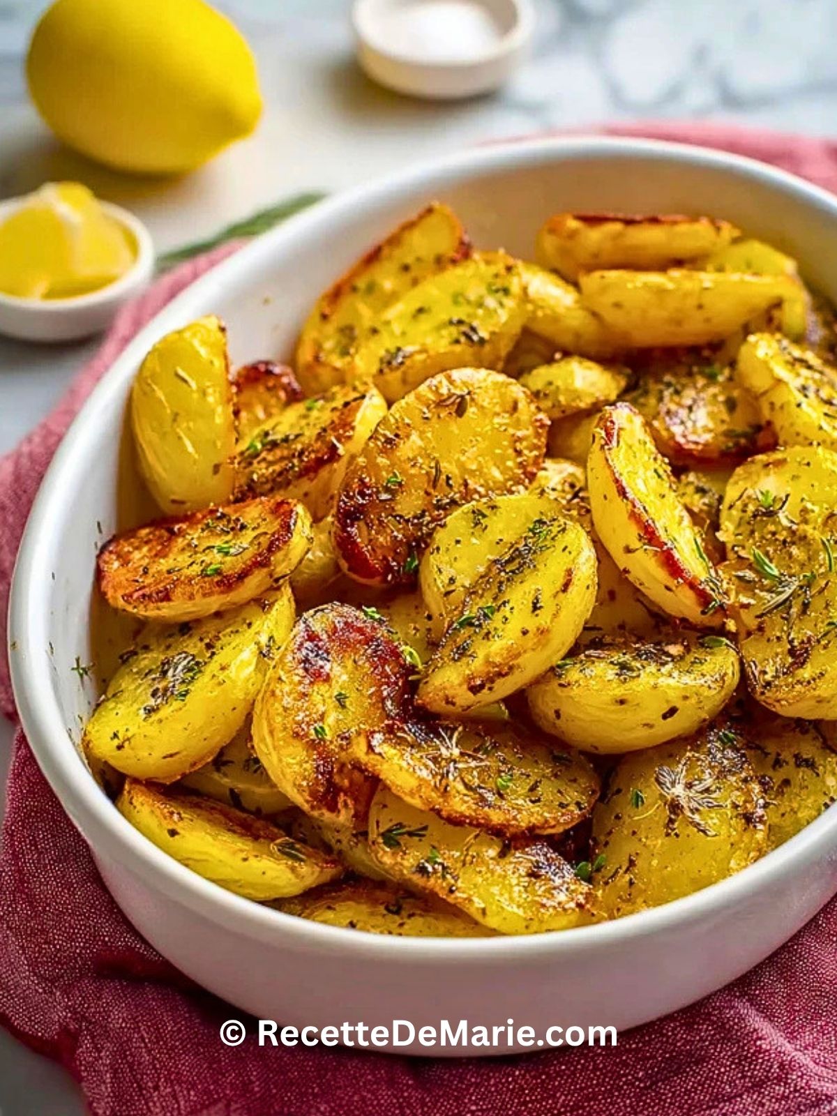 Je reviens souvent vers cette recette parce qu’elle transforme des ingrédients très simples en un plat vraiment savoureux. À l’extérieur, les pommes de terre deviennent bien dorées, tandis que l’intérieur reste tendre et fondant. Le citron apporte une fraîcheur vive, sans masquer le goût réconfortant des pommes de terre rôties.
