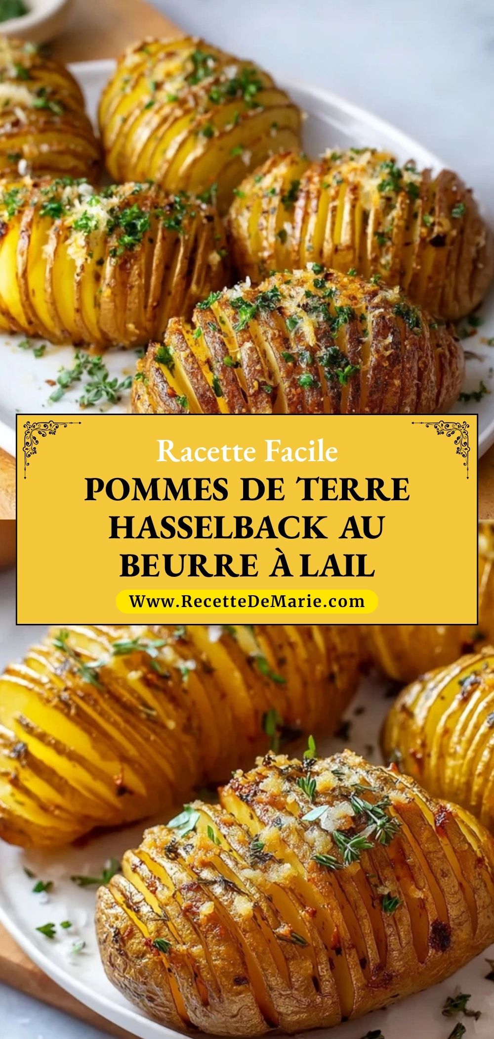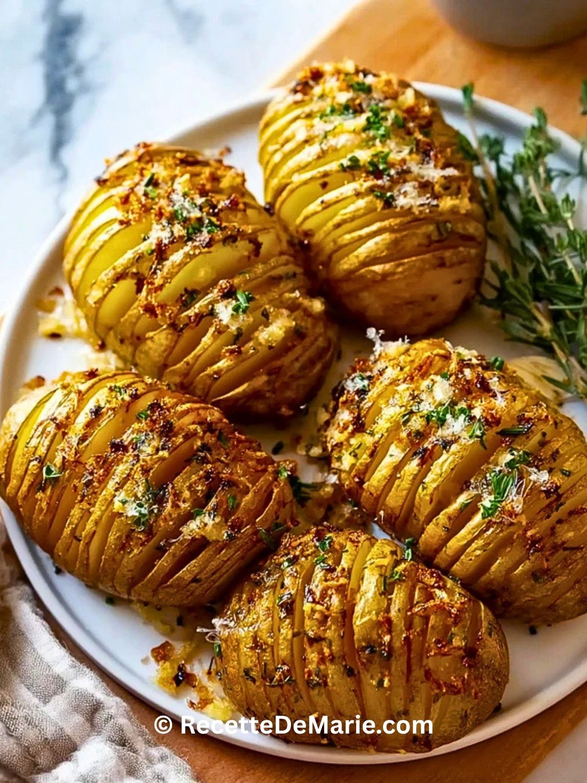 Keywords: pommes de terre Hasselback, pommes de terre au beurre à l’ail, accompagnement au four, pommes de terre rôties, recette facile