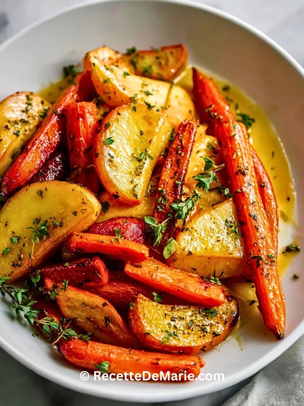 Pommes et Carottes Rôties au Miel et à la Moutarde
