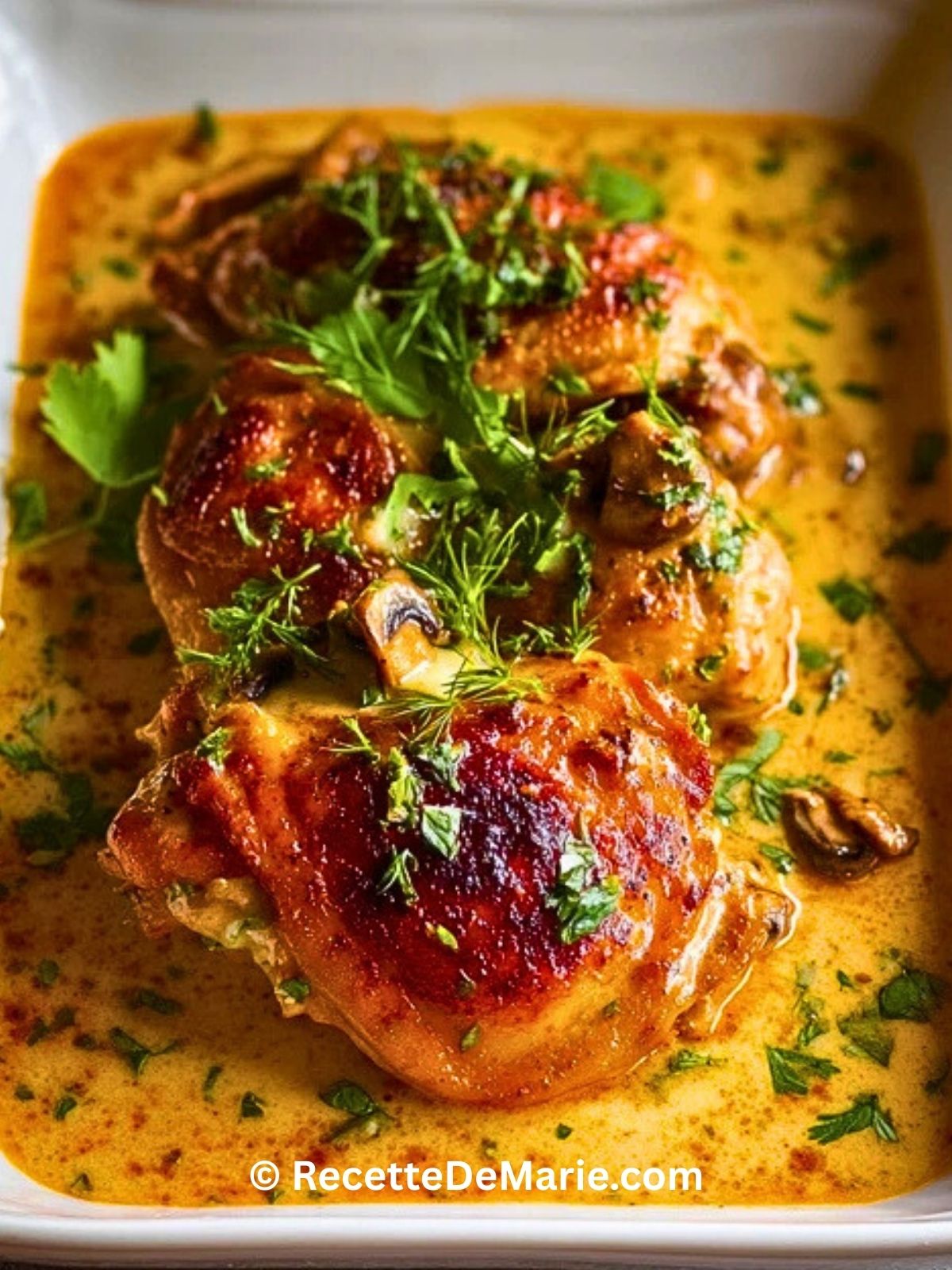Ce qui me plaît particulièrement, c’est ce mélange de saveurs douces et relevées, la sauce onctueuse à souhait, et le fait que chaque morceau de poulet soit bien imprégné de toutes ces épices. Un vrai plat réconfortant qui impressionne à tous les coups sans effort !