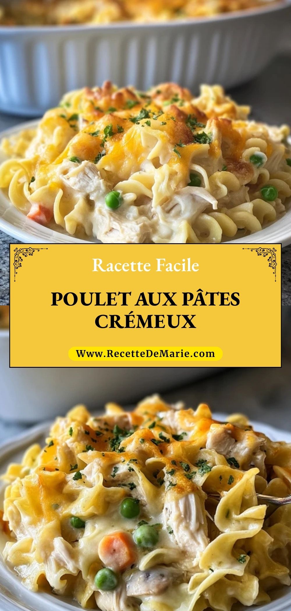 Keywords: poulet aux pâtes crémeux, gratin de pâtes au poulet, pâtes sauce fromage, recette familiale
