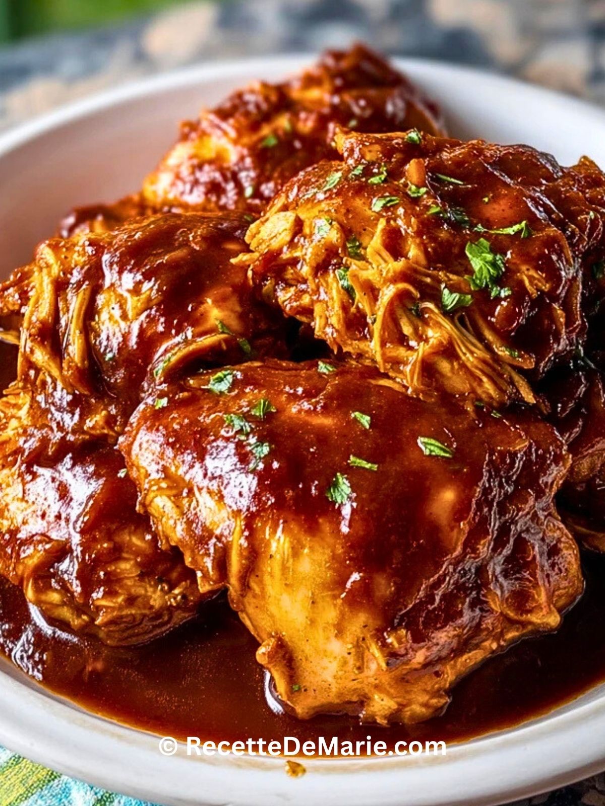 Ce poulet barbecue à la mijoteuse est un vrai allié des journées chargées : on prépare tout en quelques minutes, puis on laisse doucement mijoter jusqu’à obtenir une viande fondante et une sauce riche en saveurs. C’est le genre de recette qui plaît à tout le monde et qui se prête à mille variantes.