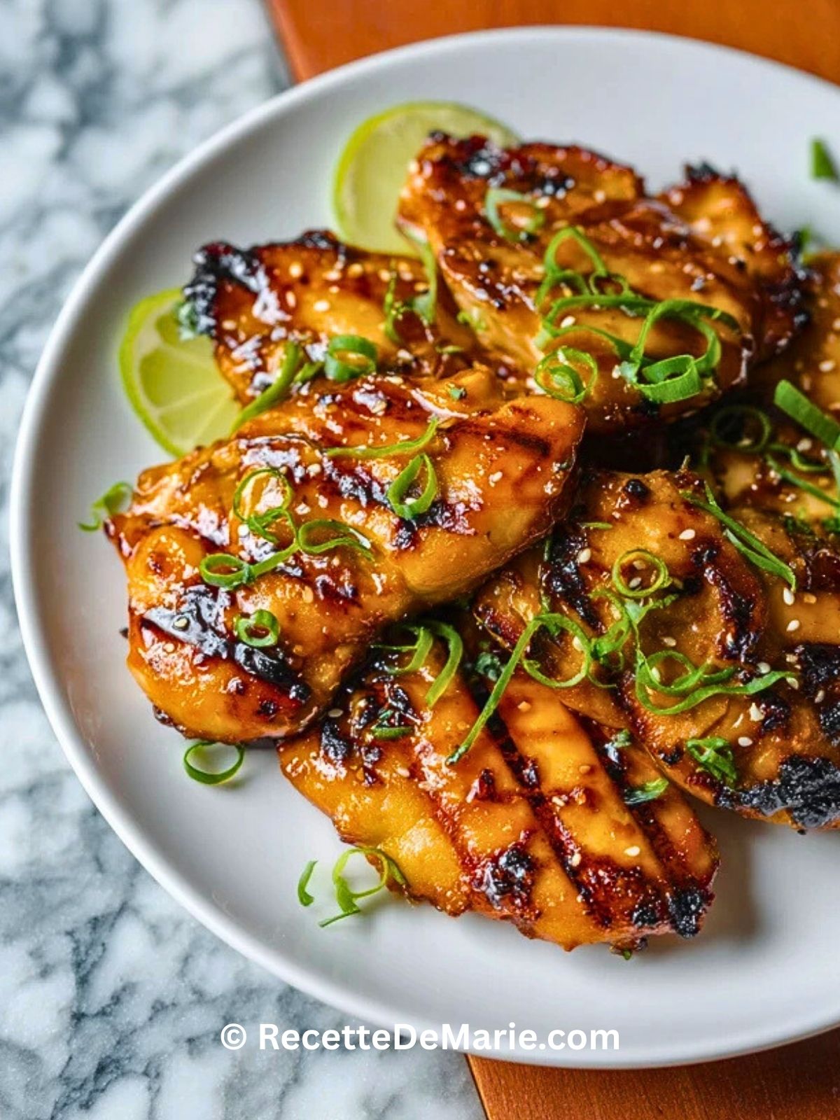 J’aime particulièrement cette recette parce qu’elle se prépare à l’avance grâce à la marinade : il suffit ensuite de faire griller le poulet et de le napper généreusement de sauce. Servi avec un simple bol de riz bien chaud et quelques oignons verts, c’est le genre de plat qui fait l’unanimité à la maison.