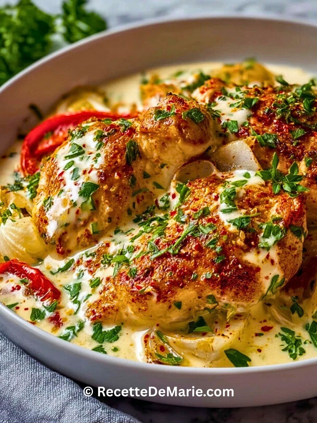 Keywords: poulet, sauce crémeuse, cuisine turque, plat familial