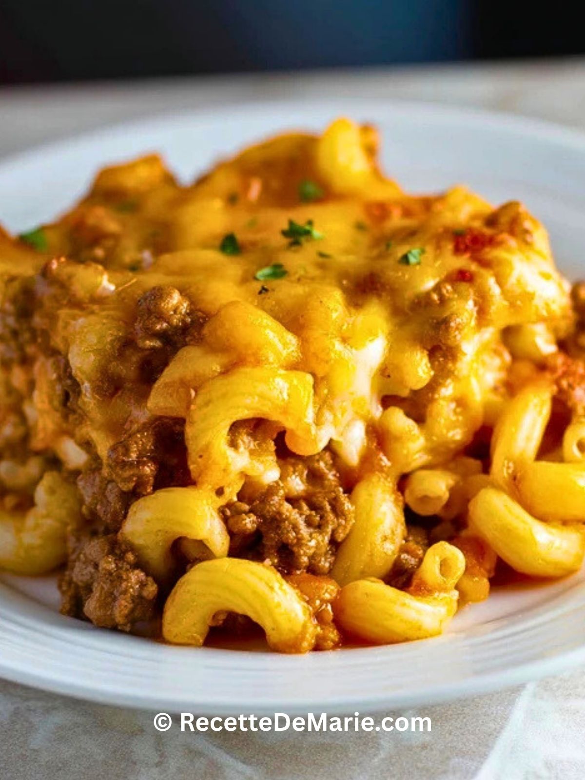 Keywords: gratin de pâtes, bœuf haché, macaroni, recette familiale