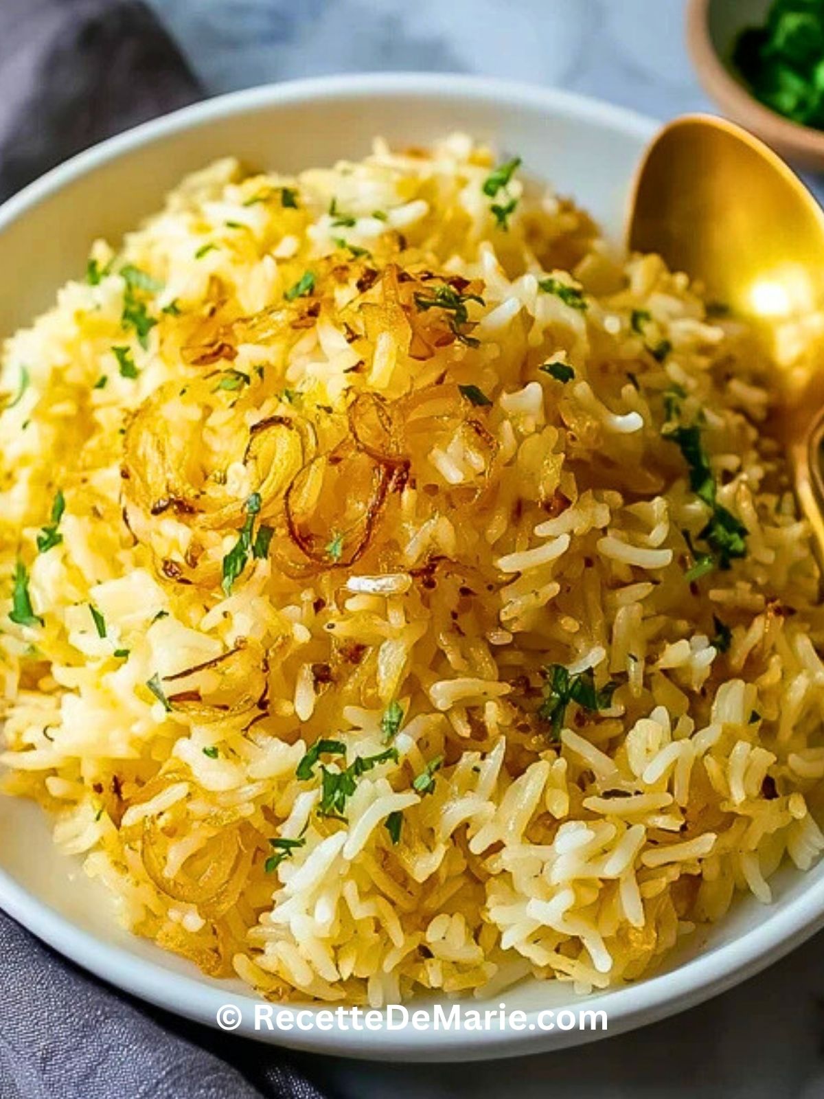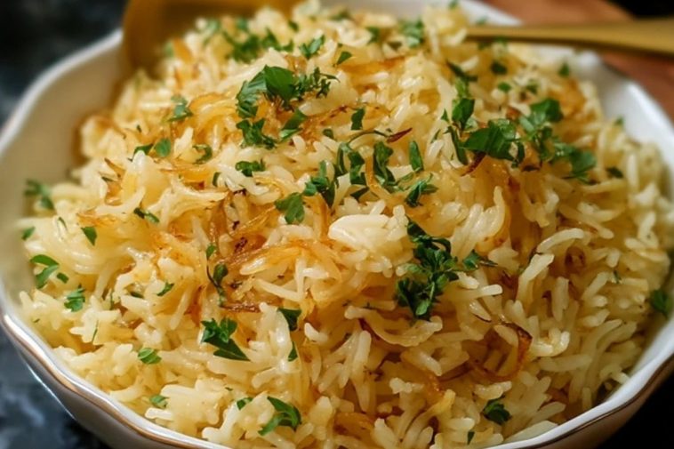 Il y a des recettes simples qui deviennent des incontournables, et ce riz basmati au beurre d’oignon doré en fait clairement partie. Je le prépare souvent en accompagnement, mais il est si parfumé et riche en goût qu’il peut facilement devenir la star de l’assiette.