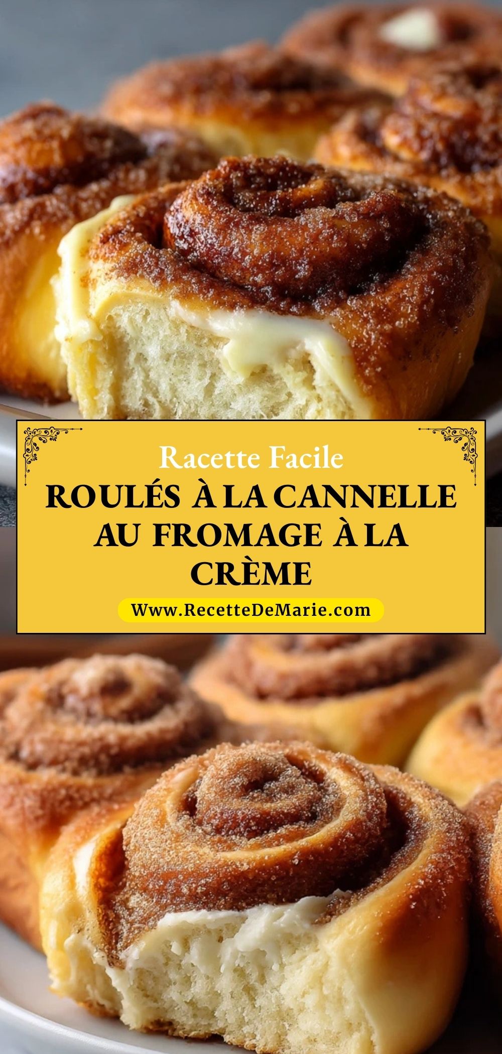 Dans cette version, les brioches sont moelleuses et filantes, généreusement garnies de sucre à la cannelle, puis nappées d’un glaçage au fromage à la crème ultra onctueux. C’est le genre de pâtisserie qui donne envie de se resservir « juste un dernier » roulé, encore et encore. Si vous avez envie de faire plaisir à votre famille ou d’impressionner vos invités, cette recette est faite pour vous.
