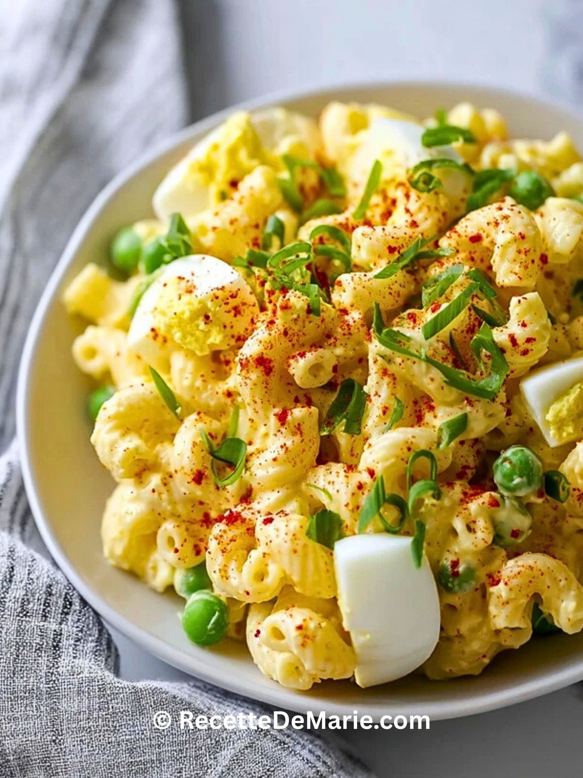 Keywords: salade de macaroni,salade de pâtes crémeuse,salade aux œufs durs,accompagnement barbecue,recette pique-nique