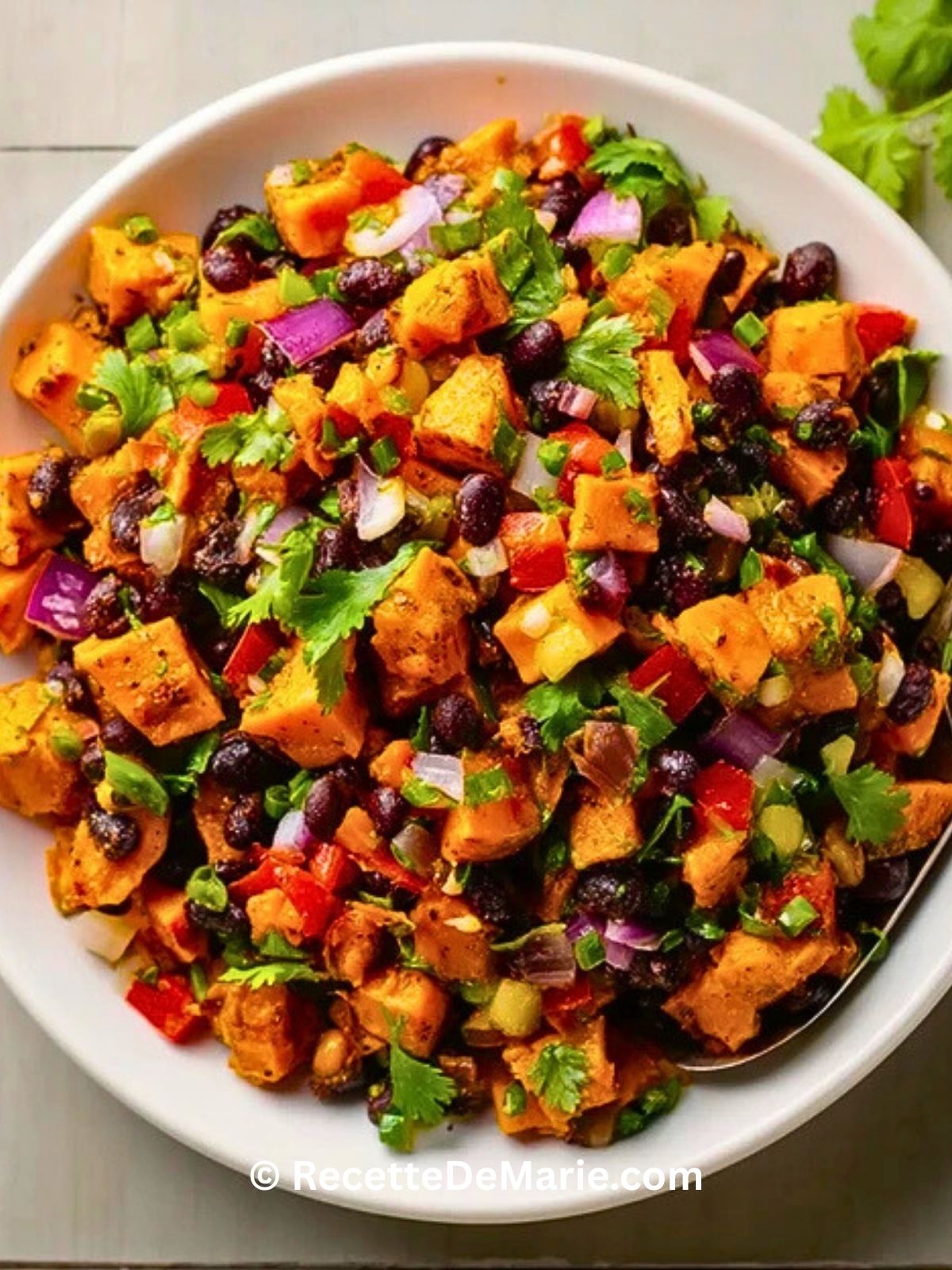 Keywords: salade patate douce, haricots noirs, recette végétarienne, repas sain