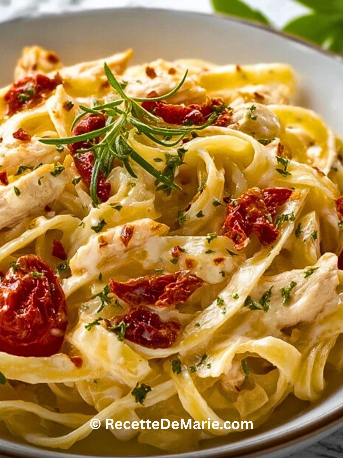 Fettuccine Alfredo au poulet et tomates séchées