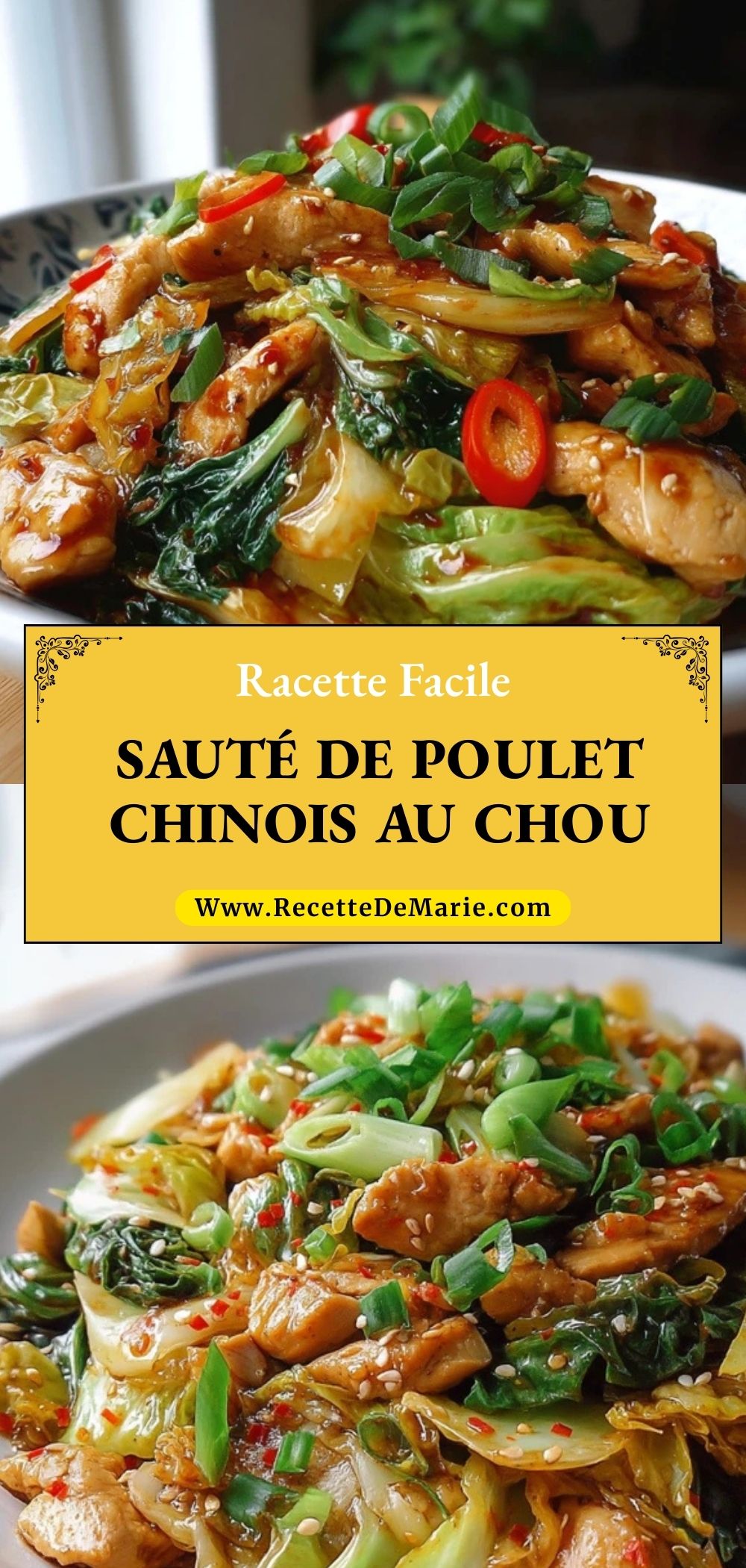 Keywords: sauté de poulet chinois, poulet au chou, wok rapide, recette asiatique facile