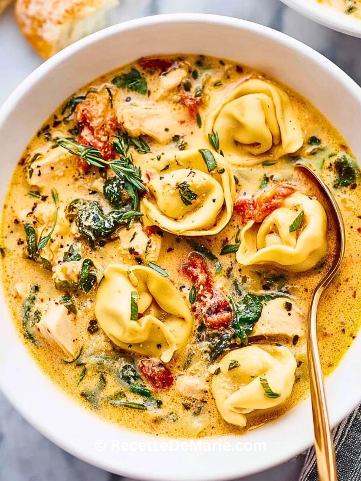 Soupe Crémeuse de Tortellinis au Poulet de Toscane