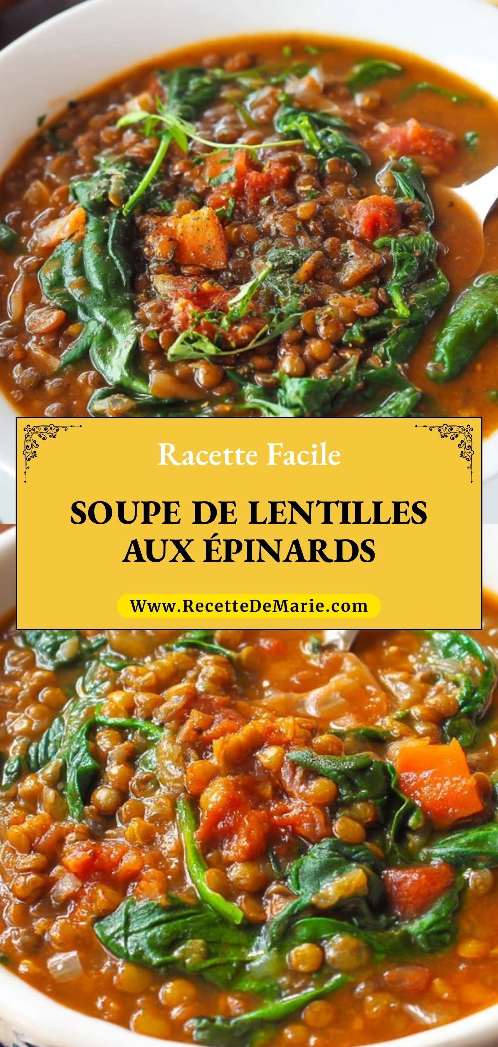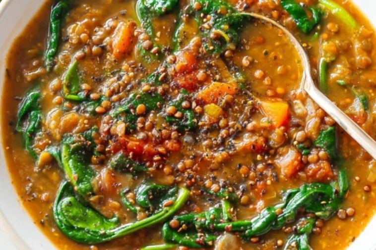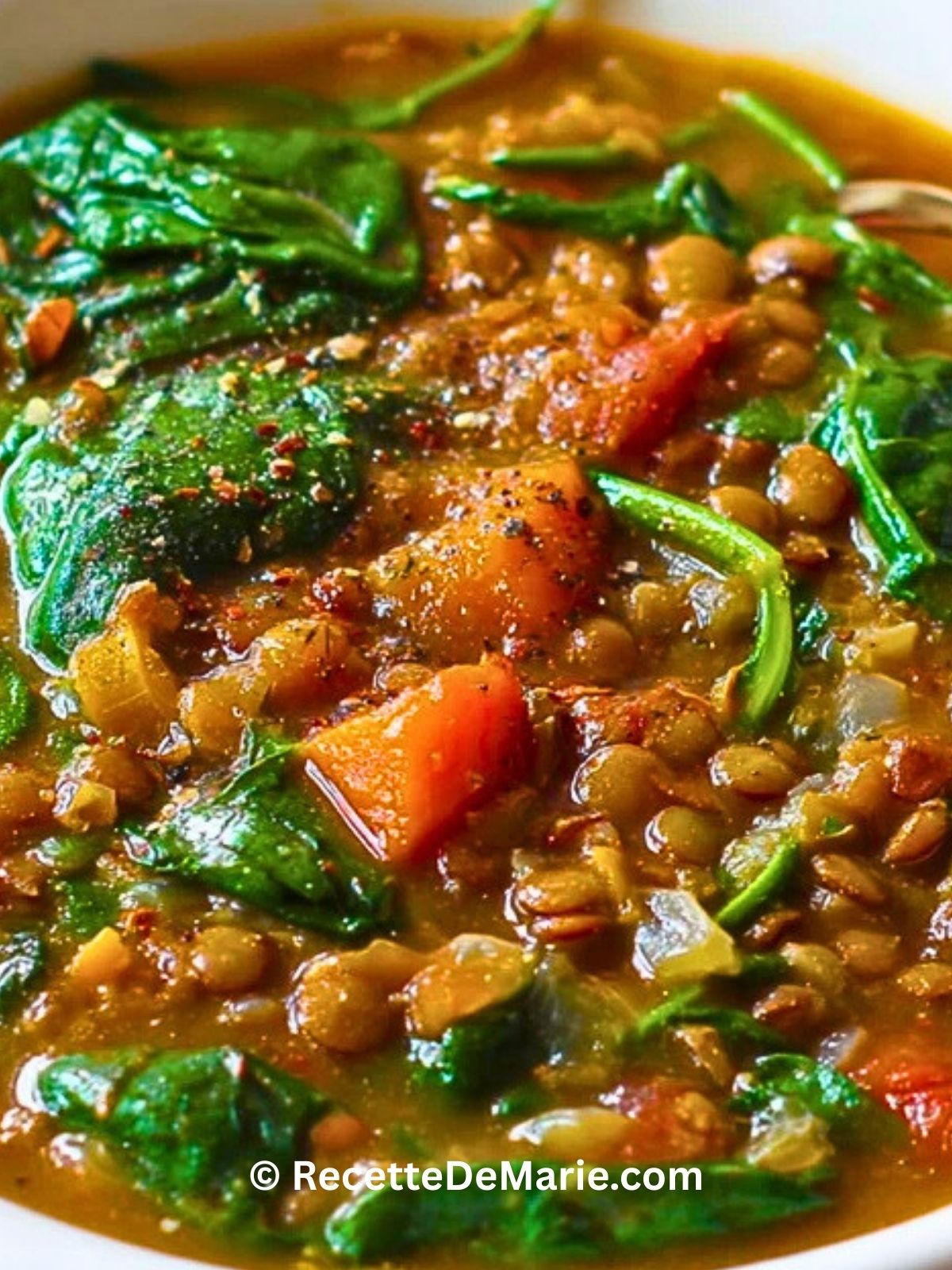 Soupe de lentilles aux épinards nourrissante, simple et savoureuse. Parfaite pour les repas d’hiver, cette recette végétarienne riche en fibres et protéines végétales est idéale pour un déjeuner sain ou un dîner léger.
