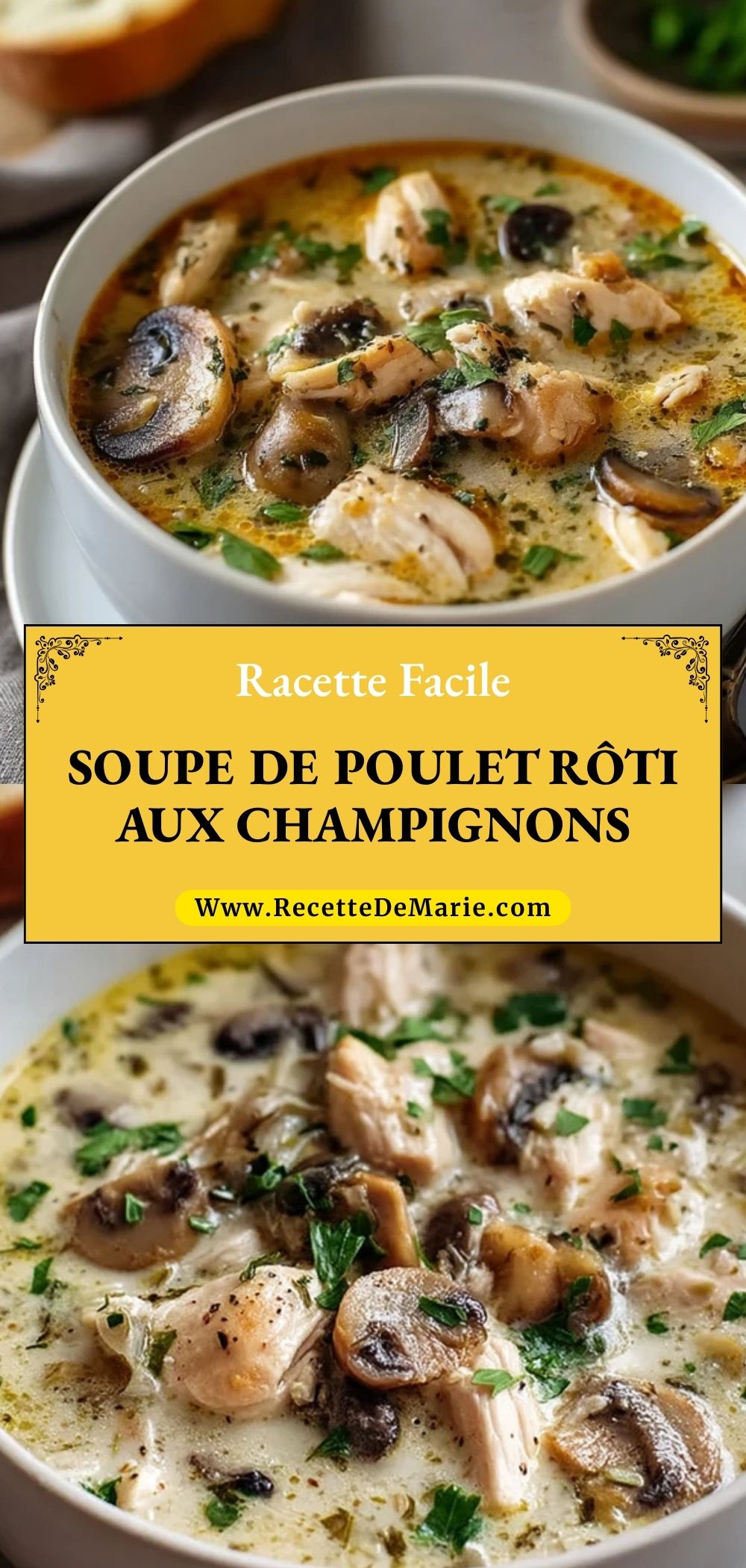 Keywords: soupe poulet rôti, soupe champignons, recette facile, soupe maison