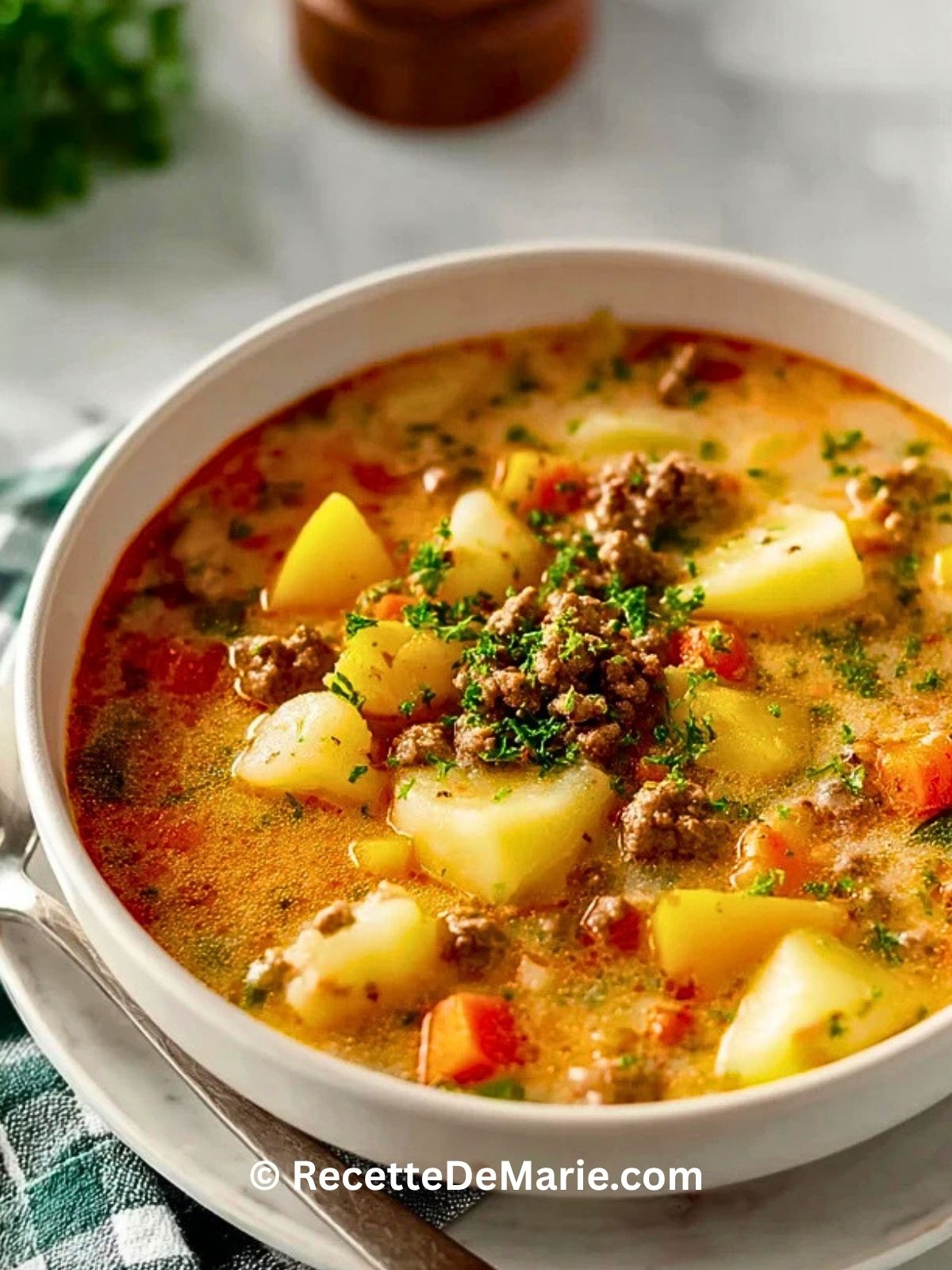 Keywords: soupe maison, soupe viande hachée, soupe pommes de terre, soupe familiale, recette réconfortante
