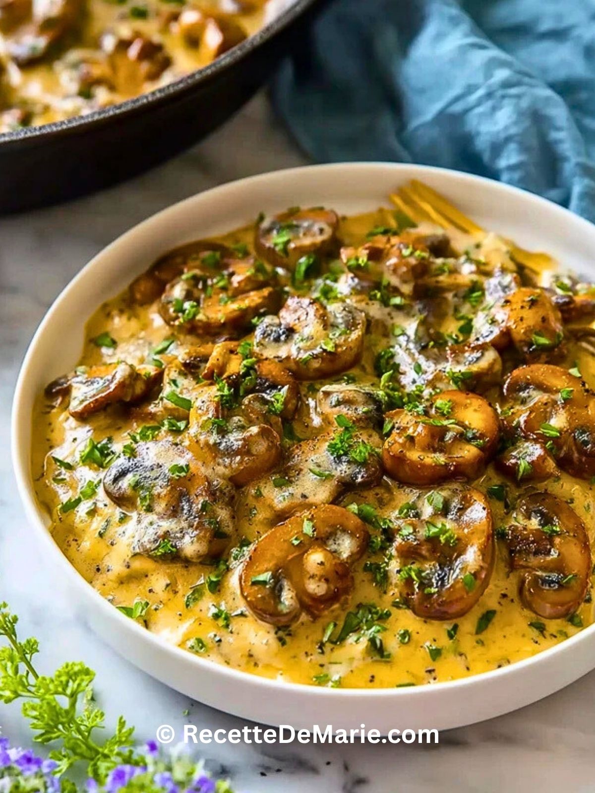 Keywords: stroganoff champignons, plat végétarien, sauce à l’ail, sans viande